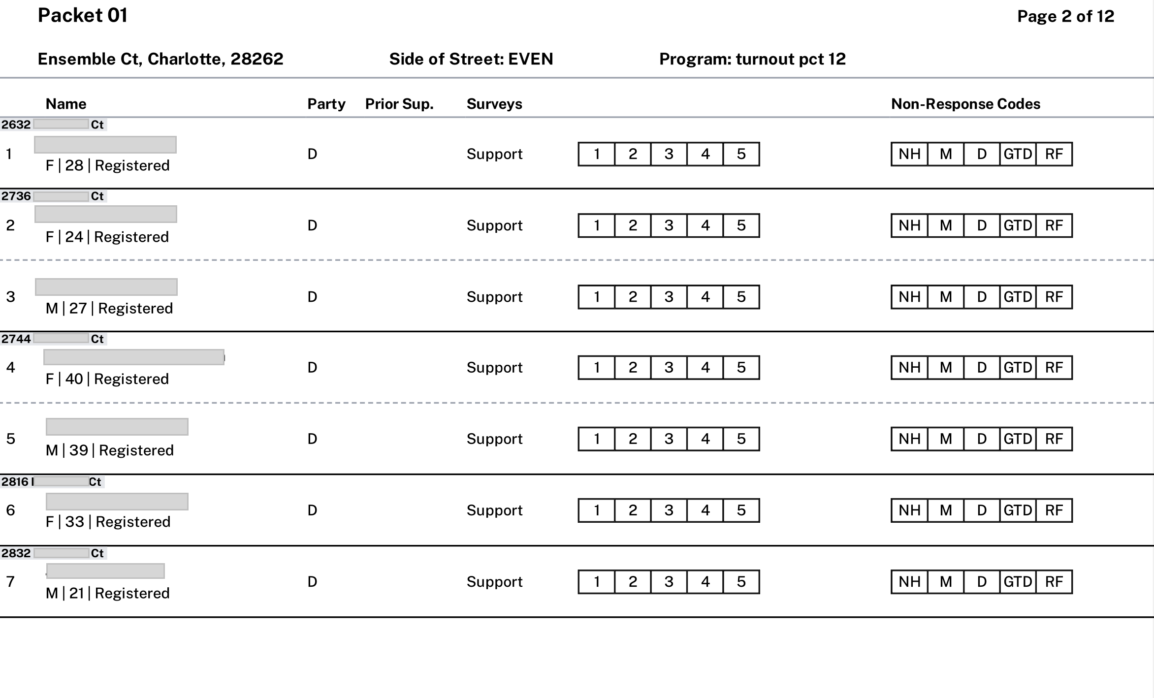 Some campaigns want to use printed canvassing packets instead of using mobile devices. This could be due to preferences or due to poor cellular signal in canvassing areas that make using mobile devices impractical.